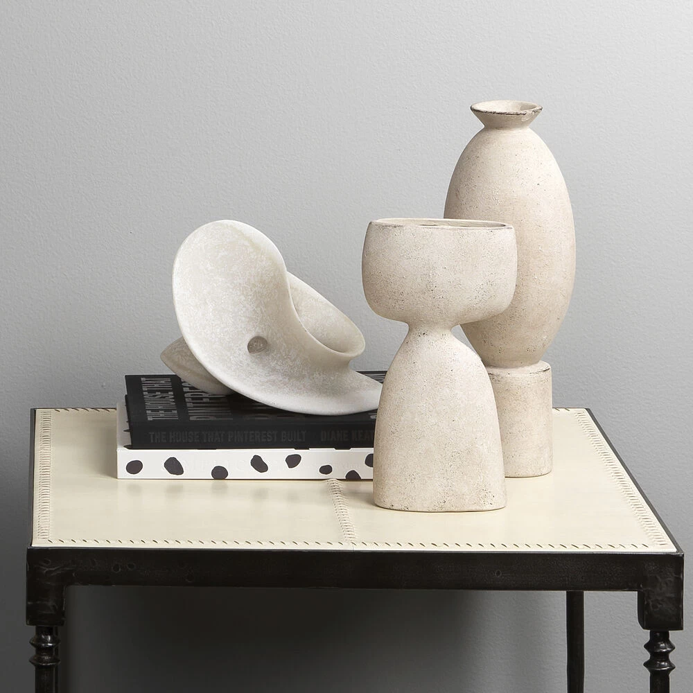 Organically inspired with generous curves and a nipped in waist, this handcrafted ceramic vase is an ideal addition to a modern, coastally inspired décor. Hand-shaped and with a gently antiqued finish, no two will be identical.