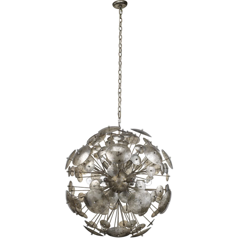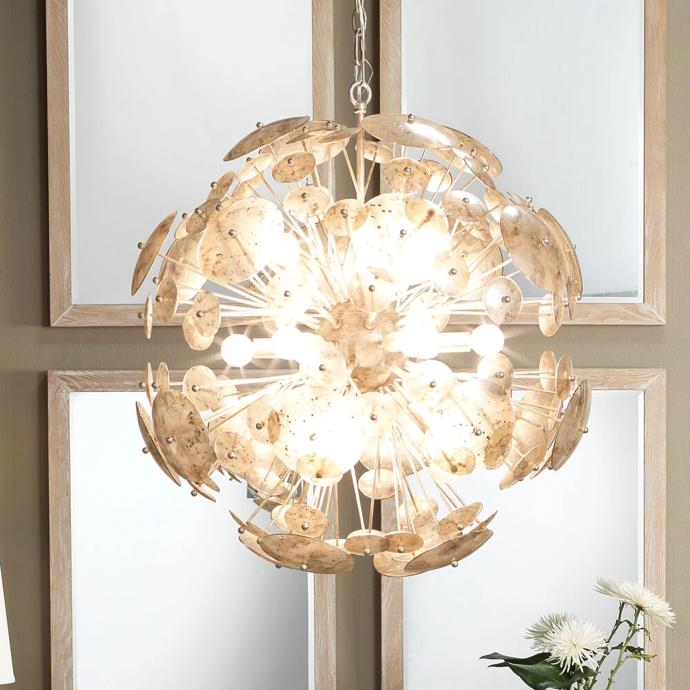 Constellation Round 12 Light 30 Inch Antique Mercury Glass & Champagne Leaf Chandelier Ceiling Light
