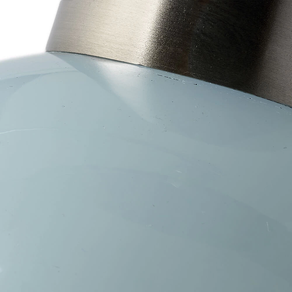The brushed nickel metal of this lamp’s body contrasts beautifully with its baby blue glass shade, and takes on an even more beautiful warm ombre effect when lit. The modern ball-capped handle makes it simple to adjust the lamp’s height to your desired angle. Sleek and sophisticated, this shorter floor lamp adds fresh style to your room’s decor.
