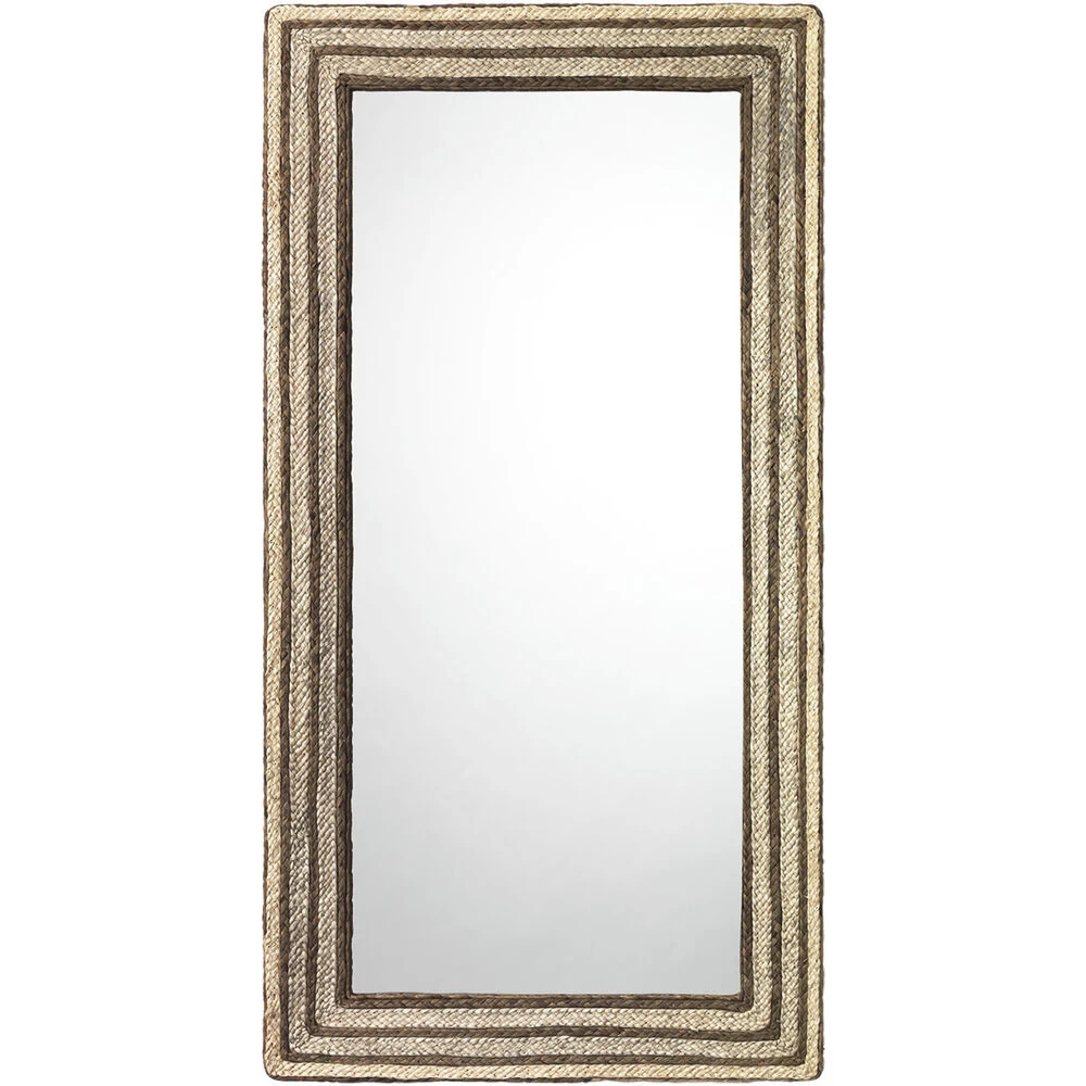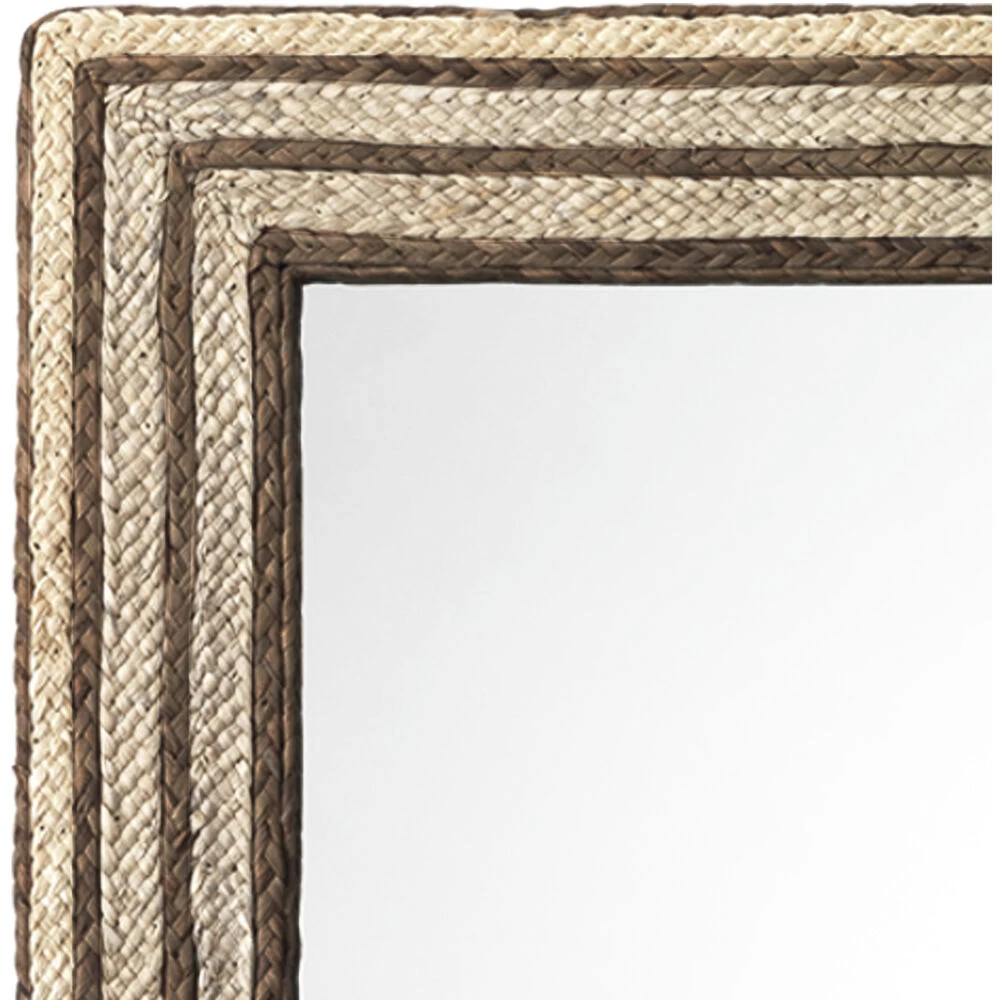 Braided seagrass wraps around the Evergreen Mirror’s long rectangle frame to highlight it’s geometric shape. The woven frame gently recesses towards the glass to add depth and dimension to this otherwise naturally, simple mirror.