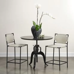 Asher 42 Inch Off-White Leather & Black Metal Bar Stool