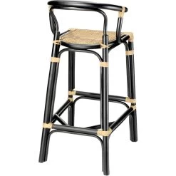 Saltwater 39 Inch Black & Natural Rattan Barstool