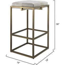Shelby 30 Inch White Hide & Antique Brass Bar Stool