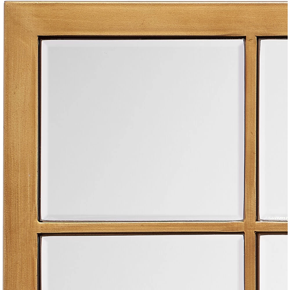 Whether you are looking to open-up a small space or spruce up an open wall, this mirror will make grand statement in any room. Inspired by a windowpane, this mirror features beveled glass surrounded by a slim metal frame hand-finished in antique brass for a classic touch.