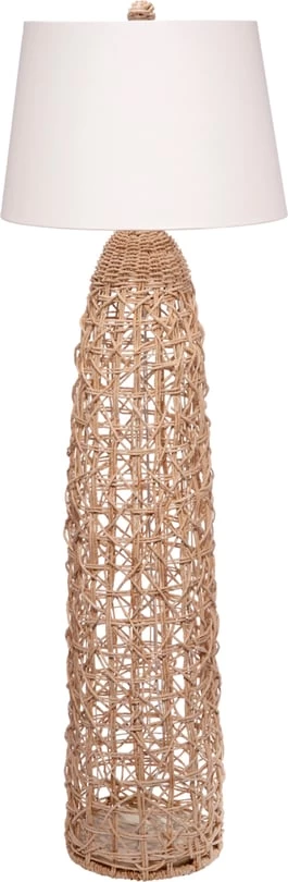 Inspired by a warm, Hawaiian summer breeze, this floor lamp will add a relaxed yet elevated atmosphere to your home. The alternating woven pattern adds interest to the body’s rounded cone-like shape, with a matching corn rope finial topping a white linen shade. Expertly handcrafted of natural material, the crisscrossed openwork weaving adds texture and fresh style to any setting. It’s strong in stature but light and airy in structure.
