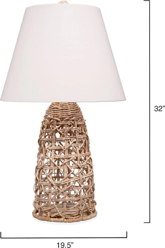 Inspired by a warm, Hawaiian summer breeze, this table lamp will add a relaxed yet elevated atmosphere to your home. The alternating woven pattern adds interest to the body’s rounded cone-like shape, with a matching corn rope finial topping a white linen shade. Expertly handcrafted of natural material, the crisscrossed openwork weaving adds texture and fresh style to any setting.
