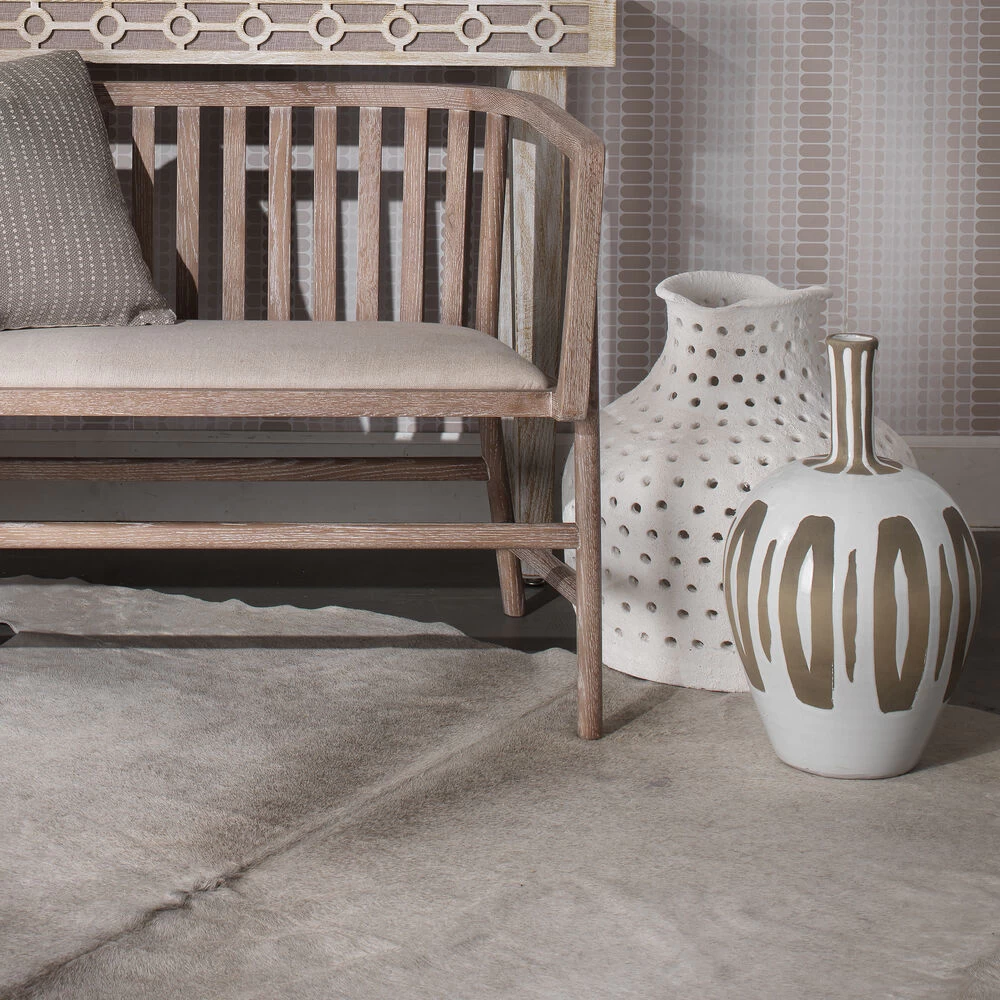 The perfect pairing of neutral colors on this casual ceramic vase create a lovely large scale accent for any room