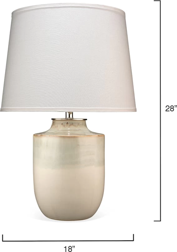 Like the perfect find at the beach, our Lagoon Table Lamp boasts beautiful ocean tones. The ombre finish gradually changes from a pale blue-green to a soft cream ceramic. This nuance in color accents the large scale of the lamp, making it the perfect combination of size and softness. Finish will vary, color will vary on ceramic body. Lamp body: 9.5″w.