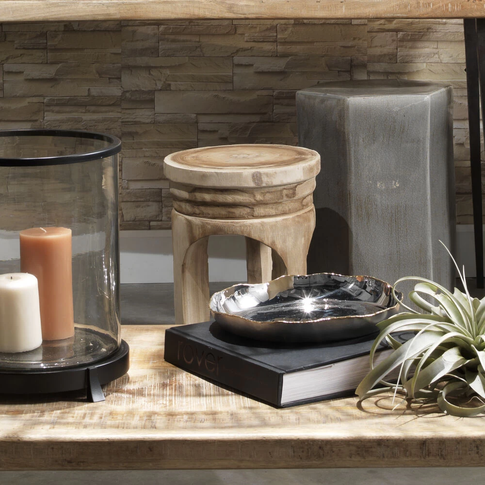 An organic rough wood turned stool with a strong and very attractive wood grain pattern, each one is unique.