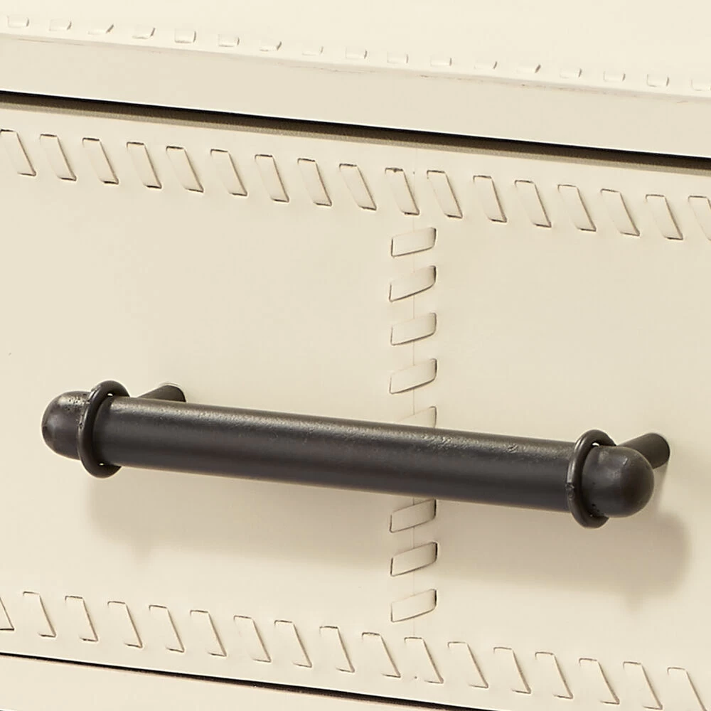 Off-white leather contrasts boldly with hand-forged iron in the artisan-crafted Nevado Console Table. Featuring two drawers that open smoothly for storage with iron pulls, elegantly sabered legs, and visible stitching for a touch of unexpected drama. Contemporary, with an Asian inspired edge and a subtle nod to Western style, this console table is perfect to display and store everything from your favorite lamp, candles or photos of your friends and family.