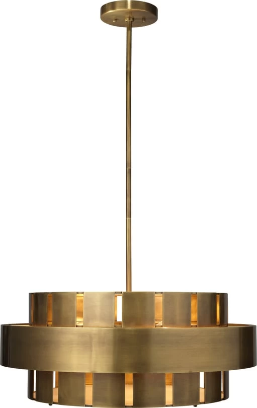 The inspiration for the Orbit pendants by Jamie Young is as unique as the lamps. She pulled from elements as disparate as the medieval turrets of European castles to the sleek circular designs popular in mid-century modern to create them! An intriguing blend of masculine and feminine, they are finished in a burnished antique brass. Available in two sizes, each includes a coordinating adjustable rod and canopy, and an acrylic diffuser to remove any harshness from their bulbs. The bulbs are not visible when sitting under the fixture.