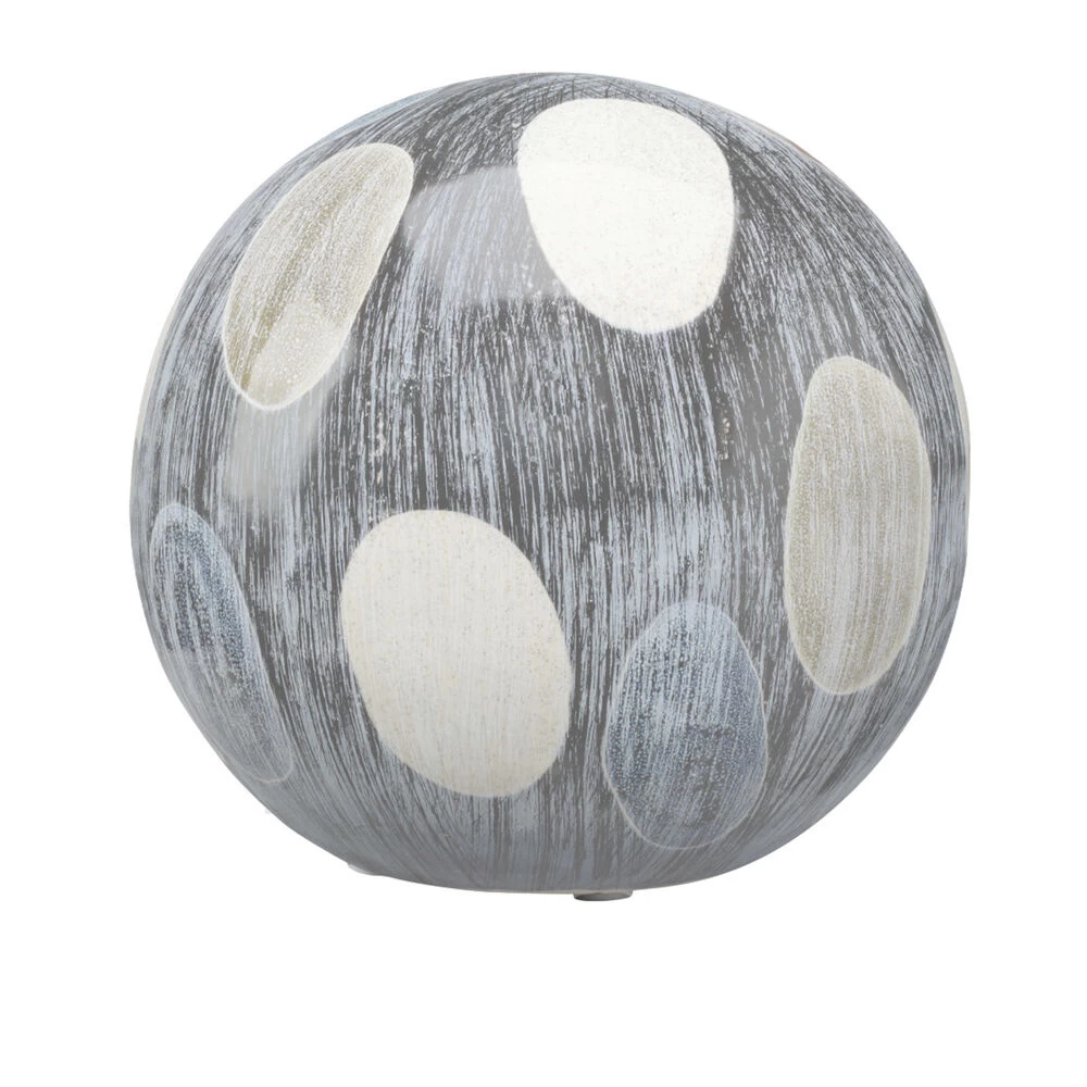 These mesmerizing ceramic orbs are hand finished in an organic pattern of cream, blue, black, and white. Inspired by the play of light and shadow on the cobblestone alleys of Europe, they add an undeniable sense of sophistication to any home. Place alone or in pairs on a console, bookcase or side table for a look of organic refinement.