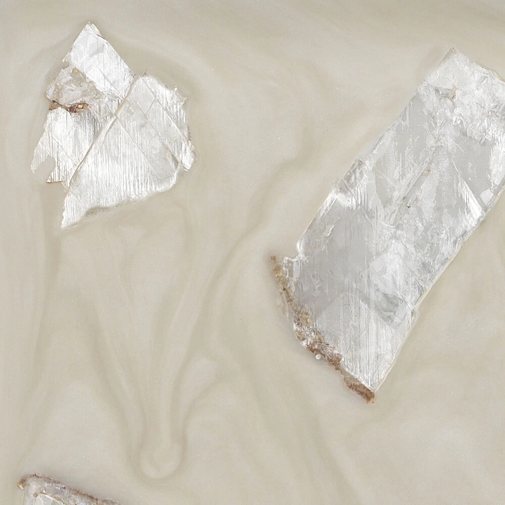Modern materials and a clean silver on white palette come together in this bright and beautiful table lamp. The body of the lamp is pearl resin accented with splashes of silver mica. More tiny touches of silver are found in the base of the finial and in the nickel neck. A crystal finial and a resin base add sparkle and clarity, and a rectangular white linen shade pulls it all together. The natural mica used ensures each Parthenon lamp is unique, and that no two will be identical. Hand crafted: no two pieces are alike. Due to the hand crafted nature, each pendant body size and circular cutout pattern will vary.