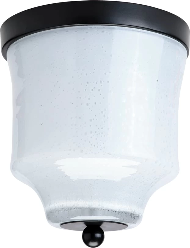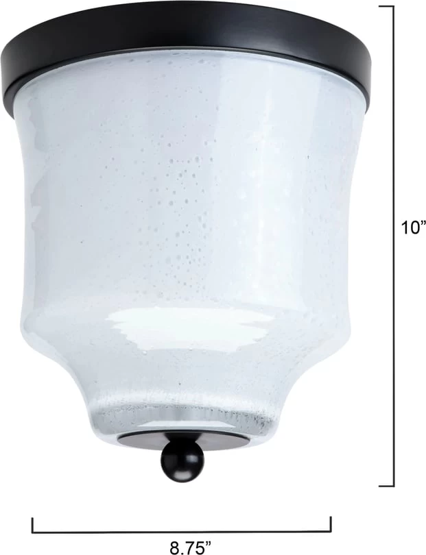 Anchored by a stunning finish ring with a matching finial, this flush mount’s body is made of handblown glass with a bubbled, milky white appearance. Simple yet elegant, this flush mount is uniquely designed to complement practically any design style in your home, whether it’s in a powder room, hallway, or entryway. Professional installation is recommended.