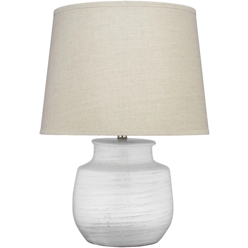 This off-white table lamp has a subtle texture traced around the lamp body, creating a coastal elegance yet whimsical piece for any room.
