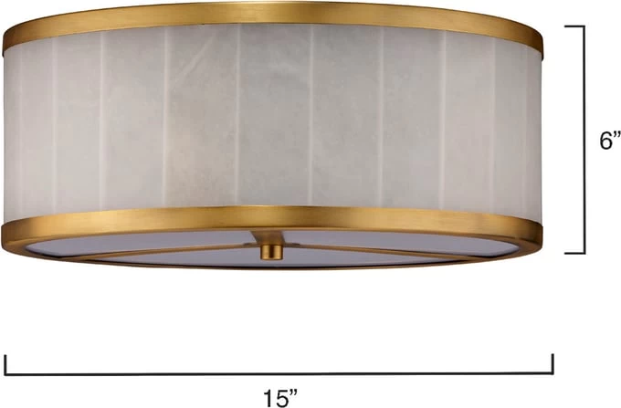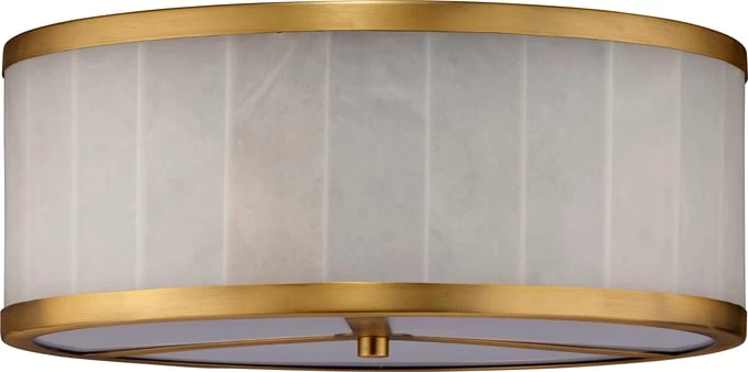 Creamy strips of rich alabaster and antiqued brass are gently shaped by hand to create our Upsala ceiling lights. When lit, the alabaster filters the light spectacularly, producing a soft, warm glow. When the lights are off, the richness of the natural material creates a focal point that enhances any modern décor. They are available in two sizes, and professional installation is recommended.