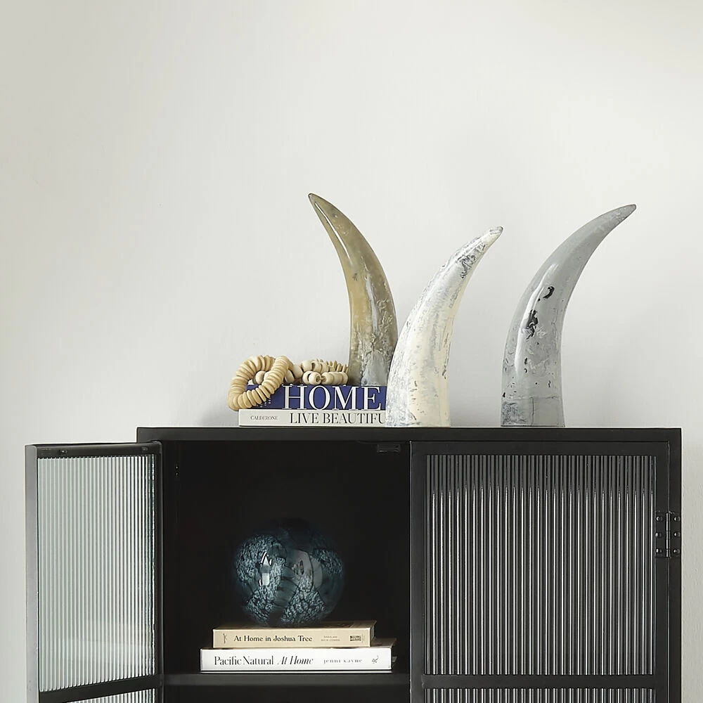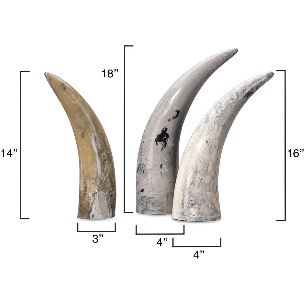 Varigated Horn Swirled Cream And Black And Grey Resin Decorative Objects, Set Of 3