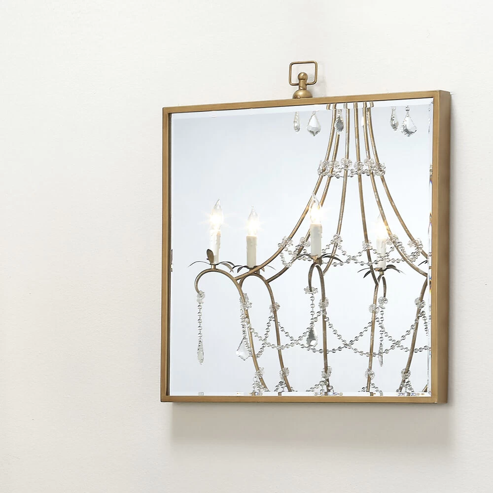 A modern take on an antique-inspired silhouette, this mirror will bring charm to a variety of décor styles. Featuring glass surrounded by a slim metal frame hand-finished in antique brass. Mounted above a vanity, sideboard or dresser, its squared shape will open-up your view and make your space feel bigger.